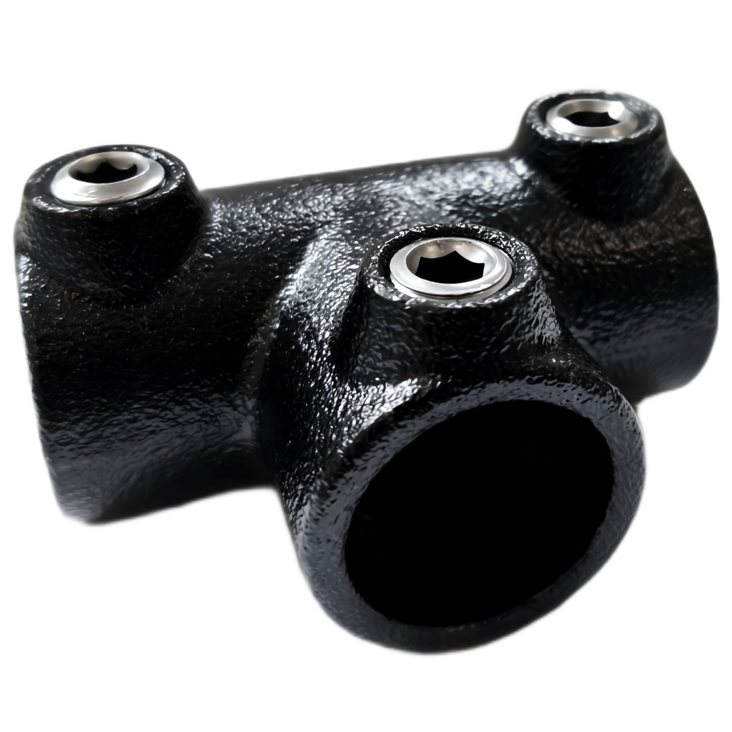 Il raccordo a T con vite BTR con finitura nera collega tre tubi perpendicolari nelle strutture decorative in stile industriale. Grazie al sistema di serraggio con chiave Allen, garantisce un fissaggio solido e discreto senza filettatura né saldatura. Questo raccordo a T è ideale per creare strutture metalliche complesse mantenendo un’estetica sobria e moderna.