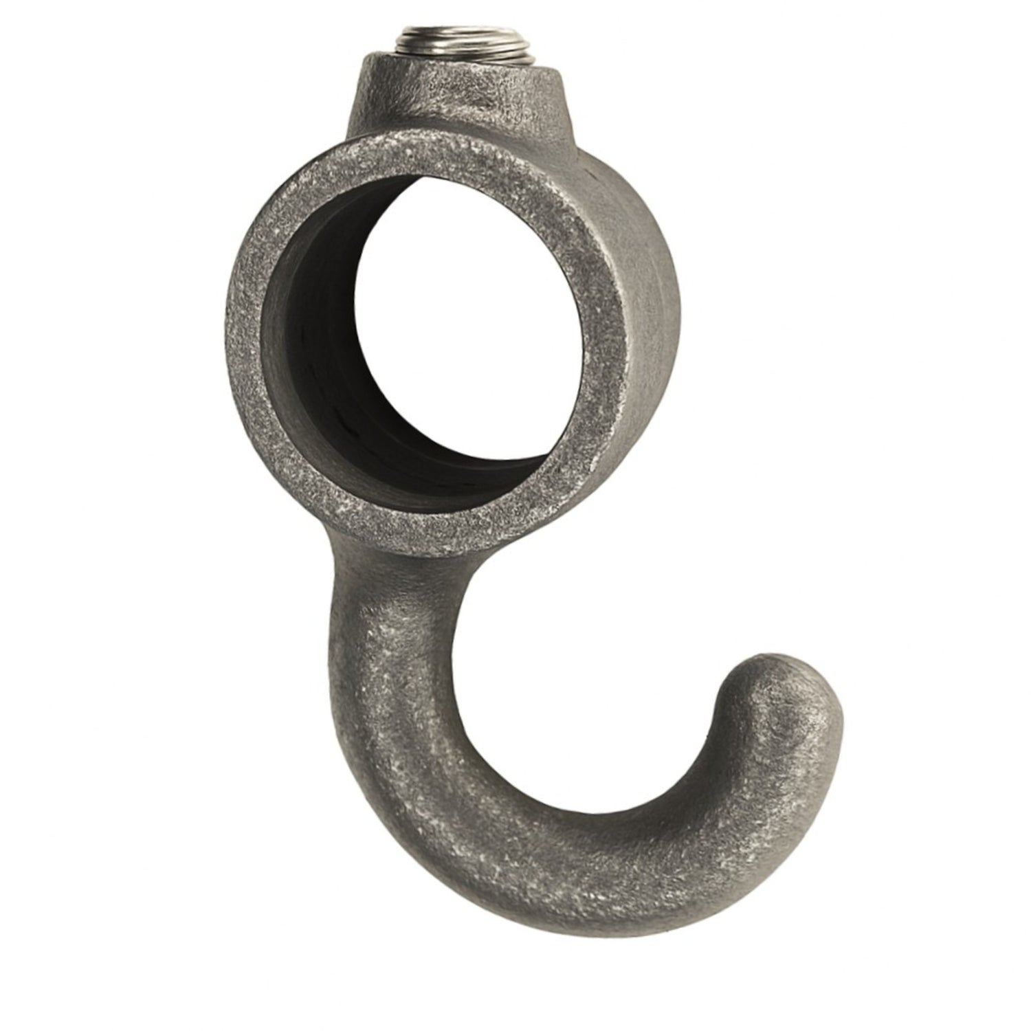 Questo gancio in ghisa grezza unisce solidità e autentico stile industriale. Progettato per essere fissato direttamente su un tubo filettato, consente di appendere o sospendere elementi decorativi mantenendo un aspetto grezzo e naturale. Il serraggio con vite a brugola garantisce una tenuta sicura e discreta, ideale per creazioni su misura e ambienti dallo stile officina.