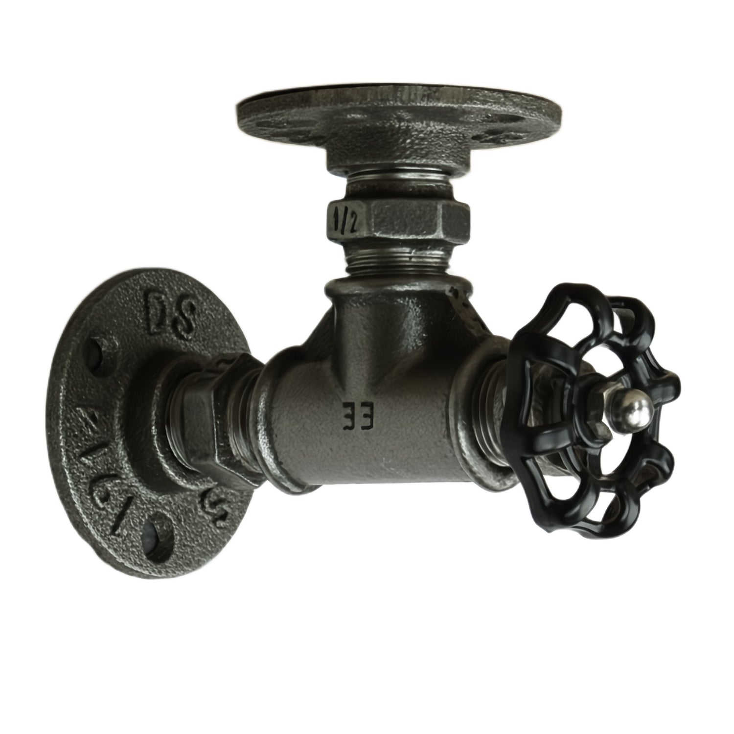 Questo modello è dotato di un volantino in metallo nero, una vera ruota di valvola in ghisa verniciata di nero, per un look sobrio e industriale.